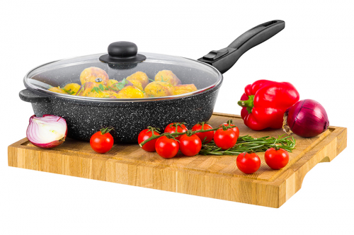 БЫЛО 2443 руб! Сковорода глубокая 28 см ГАРМОНИЯ ВКУСА "Черный мрамор" С КРЫШКОЙ ф28, с/р, 51,5*29*12 см