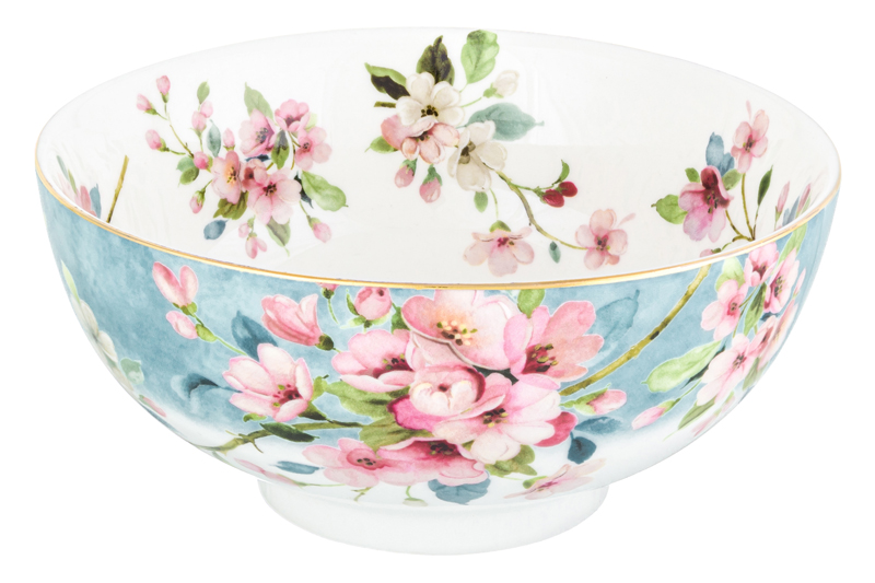 БЫЛО 423 руб! Салатник 15*15*7 см 700 мл "Яблоневый цвет на голубом" NEW BONE CHINA