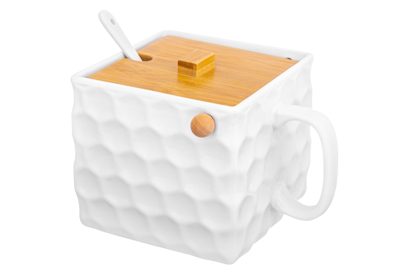 БЫЛО 937 руб! Сахарница 1,2 л 16,5*15,5*12,5 см "Соты" + ложка + деревянная крышка