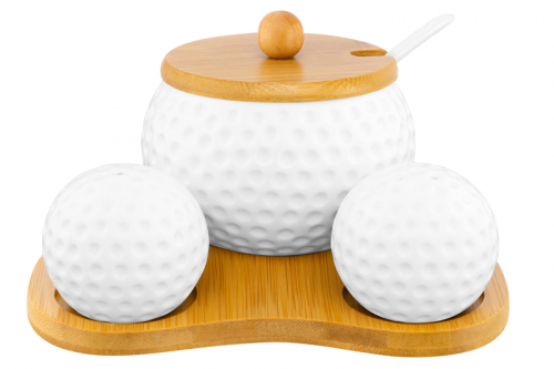 БЫЛО 1139 руб! Набор - сахарница 440 мл 16*17*8,5 см "Сфера" с ложкой + солонка + перечница на дер. подст.