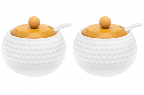 БЫЛО 669 руб! Набор 2 банок д/хранения 300 мл 10,5*10,5*9 см "Сфера" + 2 ложки + 2 дер. крышки