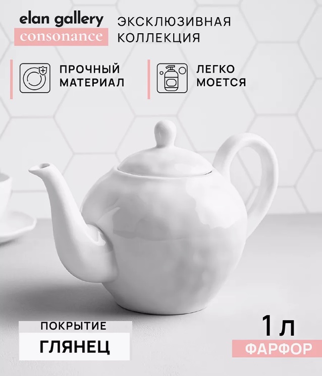 *БЫЛО 1654 руб! Чайник 1 л 25,2*14*16 см "Консонанс" белый глянец