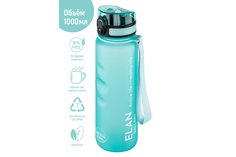 БЫЛО 1137 руб! Бутылка для воды 1000 мл 7,8*7,8*28,5 см "Style Matte" с углублениями д/пальцев аквамарин