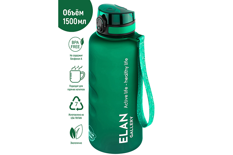 БЫЛО 1363 руб! Бутылка для воды 1,5 л 10*10*28,5 см "Style Matte" с углублениями д/пальцев темно-зеленая