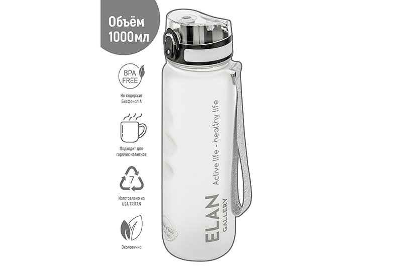 БЫЛО 1137 руб! Бутылка для воды 1000 мл 7,8*7,8*28,5 см "Style Matte" с углублениями д/пальцев белая