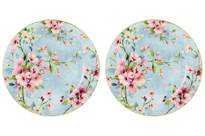 БЫЛО 974 руб! Набор тарелок для десертов 2 пр. 19*19*2 см "Яблоневый цвет на голубом" NEW BONE CHINA