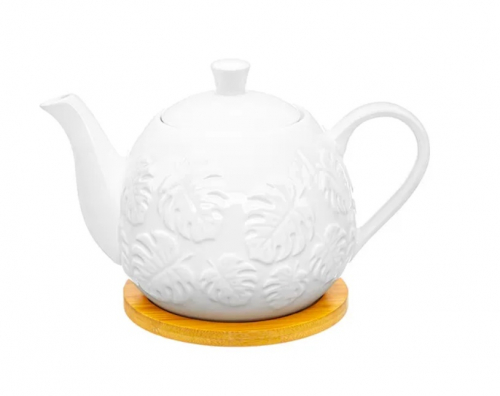 БЫЛО 1010 руб! Чайник 900 мл 21,5*13,5*14,5 см "Тропики" на деревянной подставке