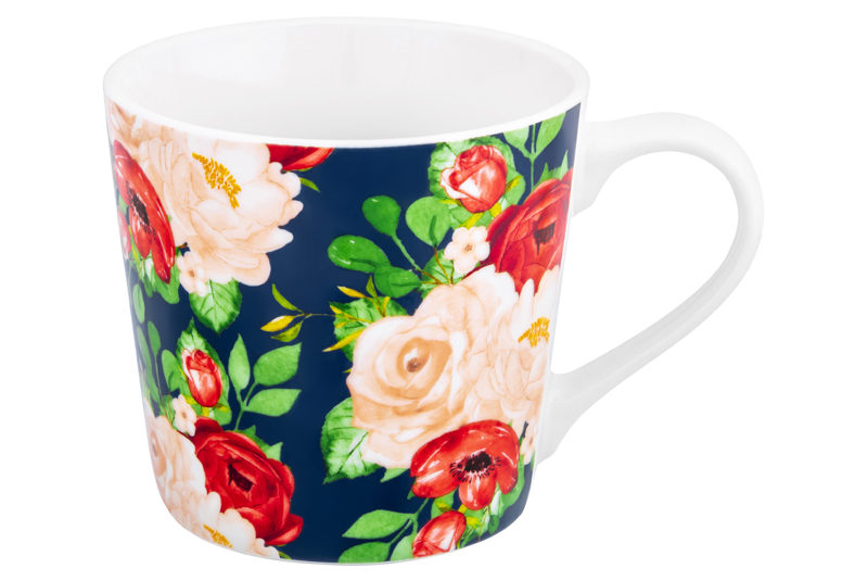 БЫЛО 342 руб! Кружка 400 мл 13*9,7*9 см "Цветочная фантазия" на синем фоне NEW BONE CHINA