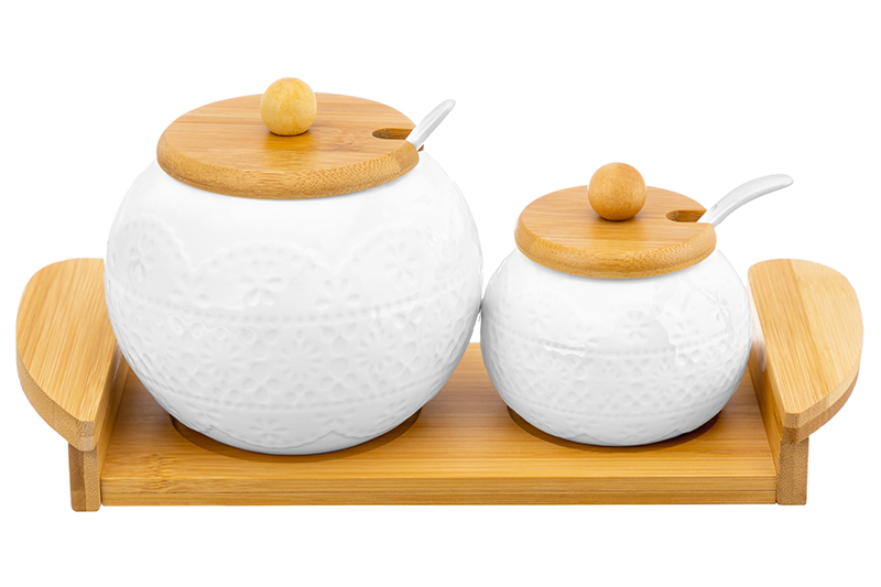 БЫЛО 1194 руб! Набор - сахарница 550 мл + солонка 170 мл 27*11,5*12 см "Кружево" + 2 ложки, на дерев. под.