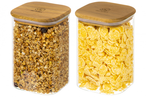 БЫЛО 1186 руб! Набор 2 банок д/хранения 1,1 л 10*10*15,5 см "Crystal glass" + крышка из акации с сил. прокл, стекло