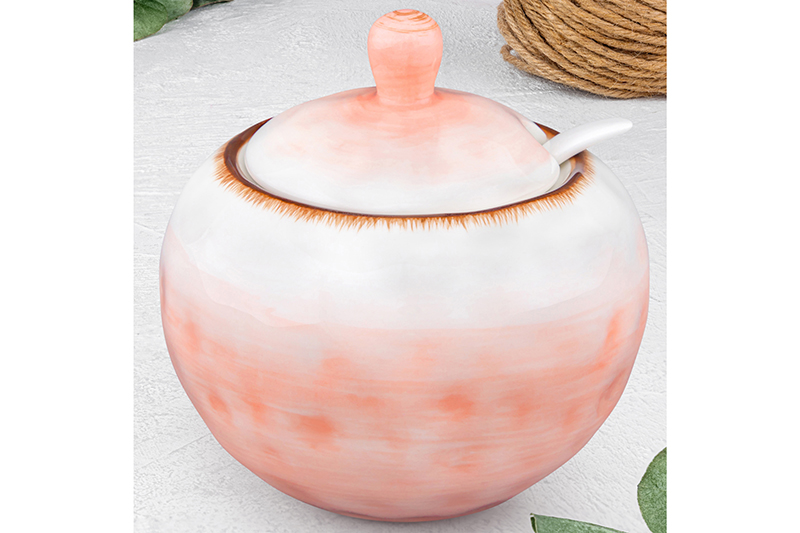 БЫЛО 775 руб! Сахарница 380 мл 10,2*10,2*10,5 см "Кантри" + ложка, коралловая