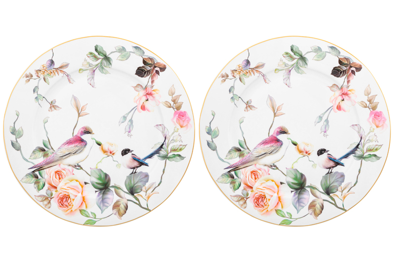 БЫЛО 1506 руб! Набор тарелок 2 пр. 26,5*26,5*2 см "Певчие птички" NEW BONE CHINA