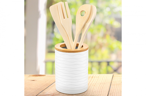 БЫЛО 682 руб! Набор кухонных принадлежностей 4 пр.с подставкой "Айсберг волны"