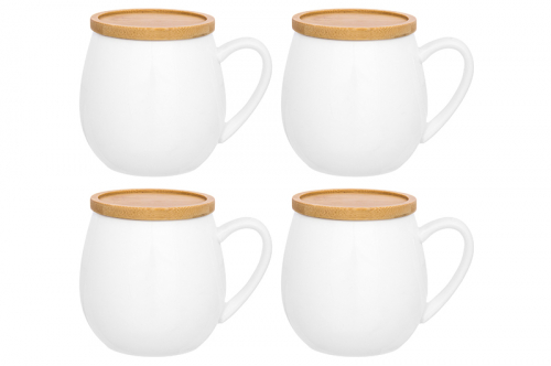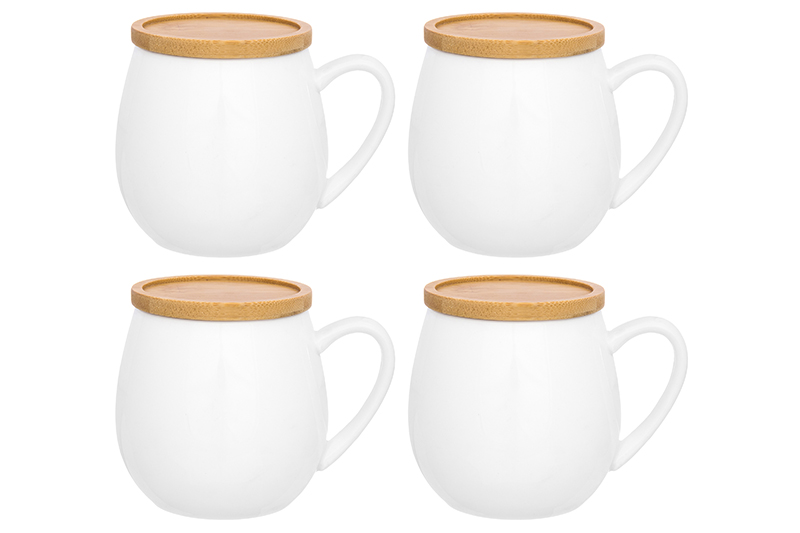 БЫЛО 1543 руб. Набор 4 кружек 400 мл 12,5*10*9,7 см "Белые ночи" бочонок + крышка-подставка