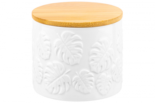 БЫЛО 577 руб! Банка д/хранения 800 мл 12*12*10,5 см "Тропики" с дер. крышк. с сил. упл.