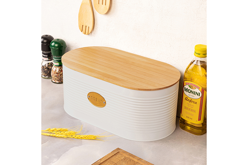 БЫЛО 1913 руб! Хлебница 34*18*14 см "Белая" с бамбуковой крышкой