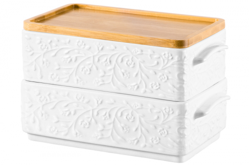 БЫЛО 1304 руб! Набор 2 блюд д/холодца 800 мл 20,5*12*12 см "Веточки-цветочки" + бамбуковая крышка