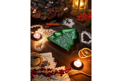 БЫЛО 559руб! Блюдо 17*14,5*2,5 см "Елочка" зеленое с серебристым орнаментом