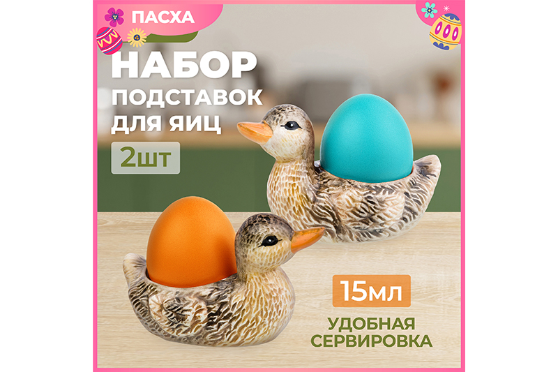 БЫЛО 555 руб! Набор 2-х подставок для яиц 15 мл 10*6*6 см "Уточки"