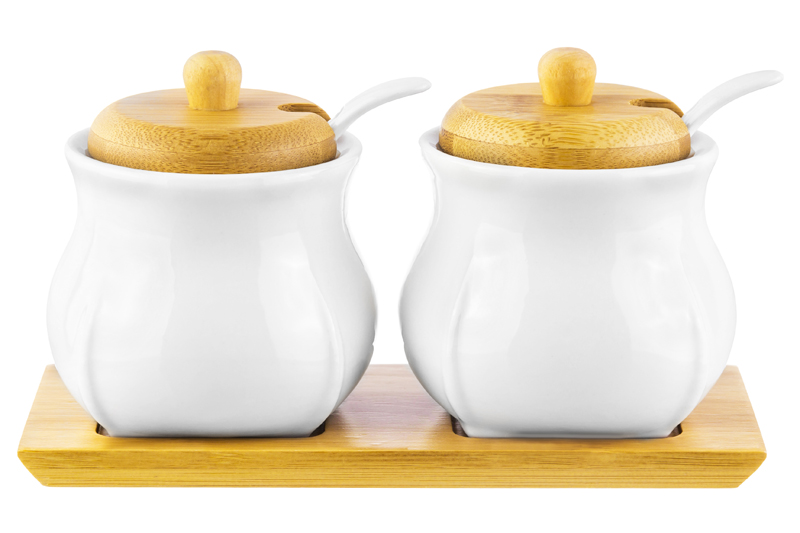 БЫЛО 984 руб! Набор - сахарница 400 мл 15*15,5*9 см "Шелк" с ложкой + солонка+ перечница дер.под.