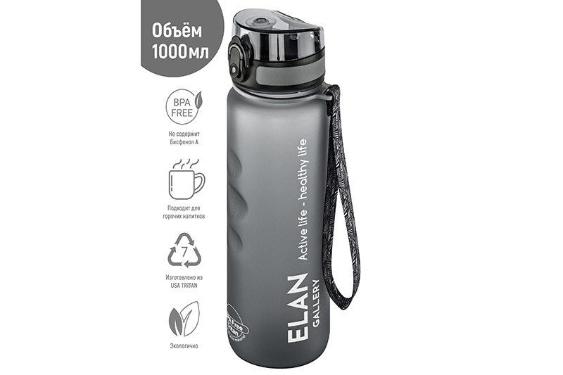 БЫЛО 1228 руб! Бутылка для воды 1000 мл 7,8*7,8*28,5 см "Style Matte" с углублениями д/пальцев серая