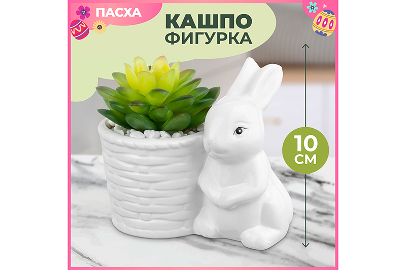 БЫЛО 351 руб! Кашпо-фигурка 11,5*7,2*10,5 см "Заяц с цветком"