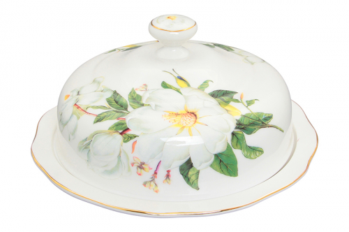 БЫЛО 1923 руб! Блинница 23,5*23,5*12,5 см "Белый шиповник" + крышка, фарфор, NEW BONE CHINA