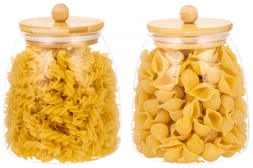 БЫЛО 1406 руб! Набор 2 банок д/хранения 900 мл 11,5*11,5*15 см "Crystal glass" + бамбук.крыш. с сил.проклад, стекло