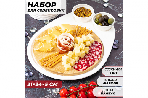 БЫЛО 1386 руб! Набор д/сервировки сыра 31,5*24,5*4 см "Айсберг" блюдо + разделочная доска + 2 соусника