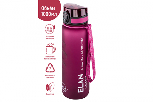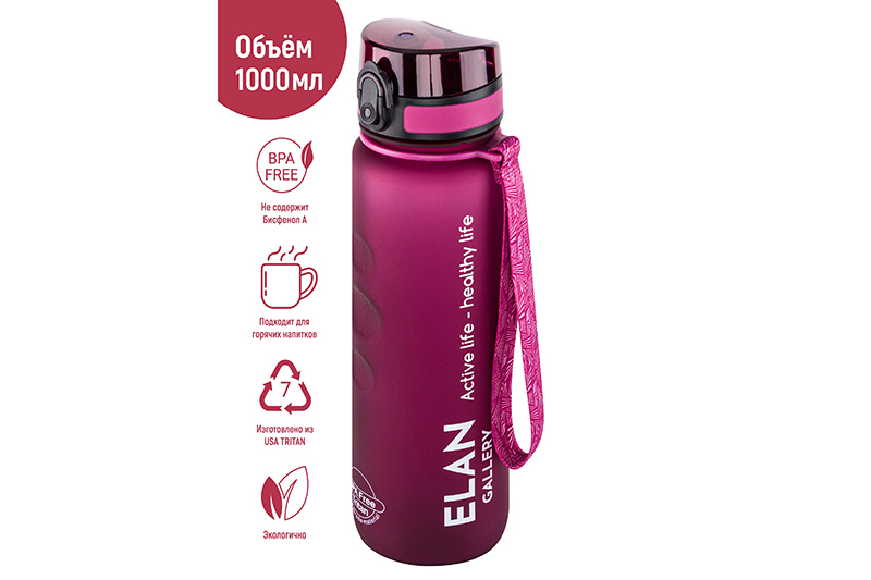 БЫЛО 1270 руб! Бутылка для воды 1000 мл 7,8*7,8*28,5 см "Style Matte" с углублениями д/пальцев бургундия