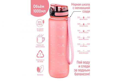 БЫЛО 1244 руб! Бутылка для воды 1000 мл 7,8*7,8*28,5 см "Style Matte" мотивационная пыльная роза