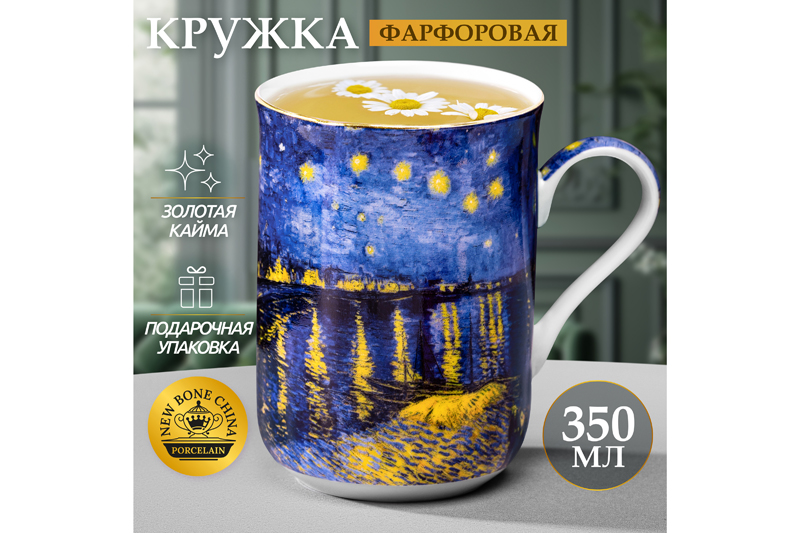 БЫЛО 583 руб! Кружка 350 мл 10,8*7,5*10,5 см "Звездная ночь над Роной" NEW BONE CHINA