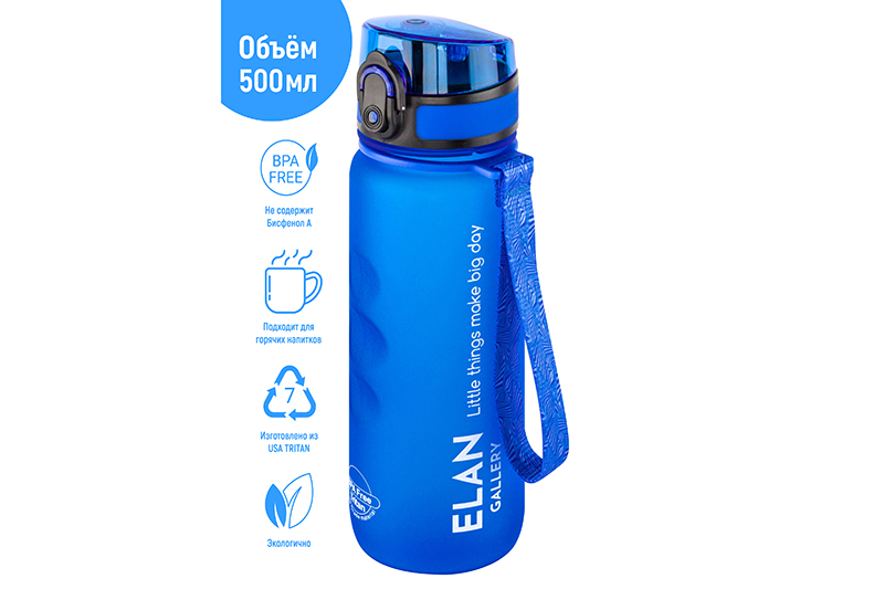 БЫЛО 948 руб! Бутылка для воды 500 мл 6,5*6,5*23 см "Style Matte" с углублениями д/пальцев, небесная
