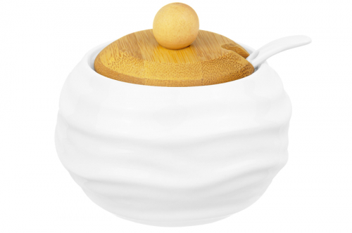 БЫЛО 1306руб! Набор - сахарница 590 мл + солонка 210 мл 28*12,3*12 см "Айсберг волны" + 2 ложки на дер. подст.