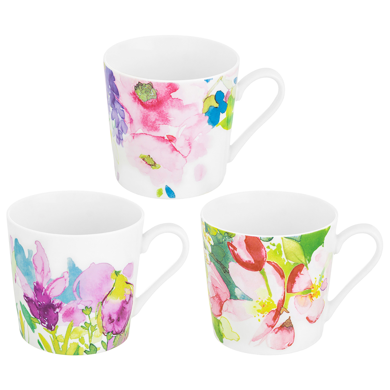 БЫЛО 1126 руб! Набор 3 кружек 380 мл 12,5*9*9 см "Ирисы + Летние цветы + Яблоневый цвет" NEW BONE CHINA