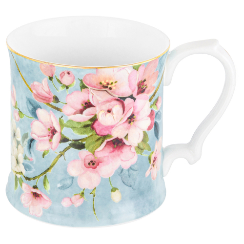 БЫЛО 442 руб!! Кружка 380 мл 12,3*9*9 см "Яблоневый цвет на голубом" NEW BONE CHINA