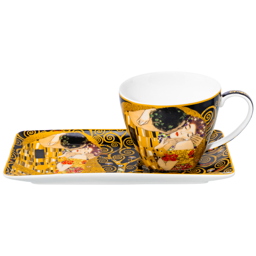 БЫЛО 1025 руб!! Чашка 250 мл с блюдцем для десерта 20*10*2 см "Поцелуй на черном", NEW BONE CHINA