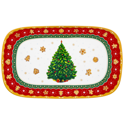 БЫЛО 984 руб! Блюдо 24*15*2,5 см "Новогодняя елка" прямоугольное, красный узор NEW BONE CHINA
