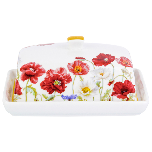 БЫЛО 683 руб!! Масленка 13,5*9*6,5 см "Маки" NEW BONE CHINA