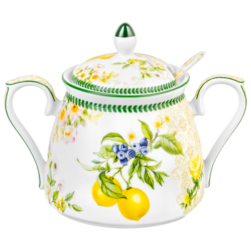 БЫЛО 796 руб!! Сахарница 400 мл 15*10*11,5 см "Лимоны" + ложка NEW BONE CHINA