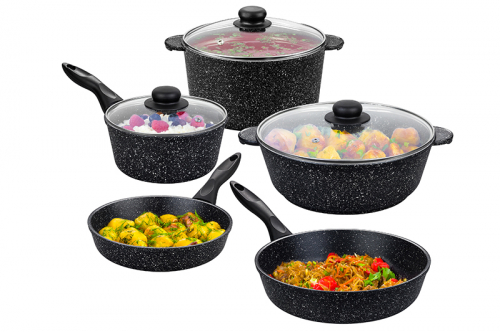 БЫЛО 10033 руб.Набор 5 пр. - Жаровня 26см+Кастрюля 4л+Ковш 1,5л+Сковорода 26см+Сковорода 22см+3 крышки (18,22,26)