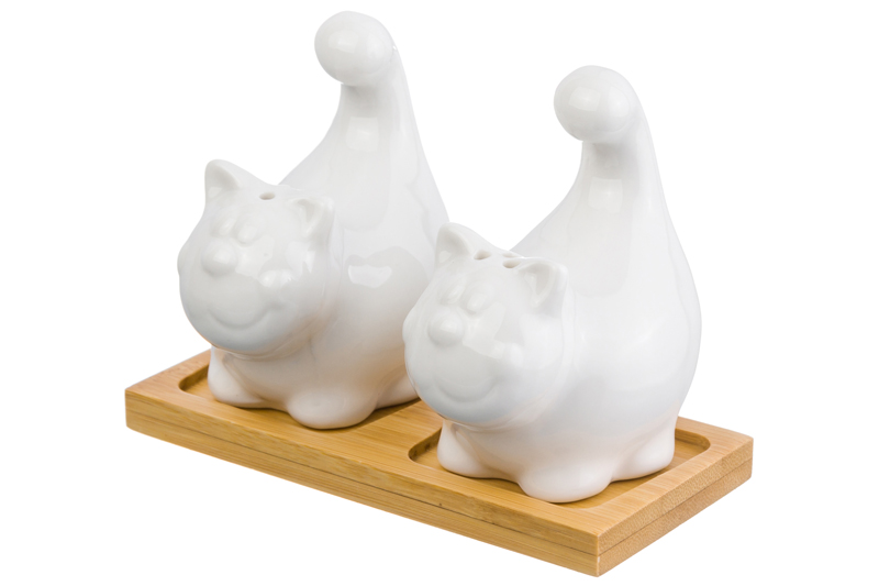 Набор д/специй 2 пр. 12,5*6*9 см "Коты" на дерев. подставке