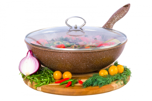 Сковорода ВОК 28 см 47*29,5*15 см "Мрамор" С КРЫШКОЙ ф28, несъемн. ручка