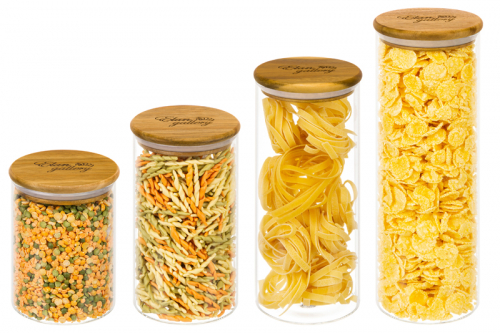 Набор 4 банок д/хранения круглая 540 мл+700 мл+1 л+1,3 л "Crystal glass"+ крыш. из акации с сил/прок