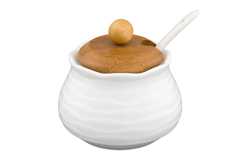 БЫЛО 404 руб! Сахарница 350 мл 11,5*10,5*10,5 см "Айсберг" + ложка + дер. крышка на дер. подставке