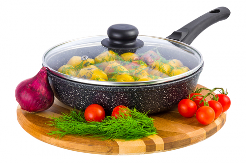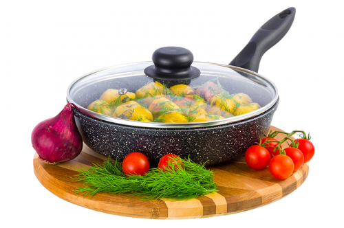 Сковорода глубокая 22 см 38*23*10 см ГАРМОНИЯ ВКУСА "Черный мрамор" С КРЫШКОЙ ф22
