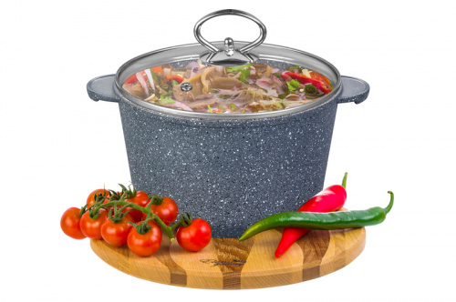 Казан (кастрюля) 3,3 л 22 см ГАРМОНИЯ ВКУСА "Черный мрамор" Индукция, с крышкой ф22