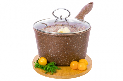 Ковш 1,5 л 34*19*14 см ГАРМОНИЯ ВКУСА "Черный мрамор" С КРЫШКОЙ ф18