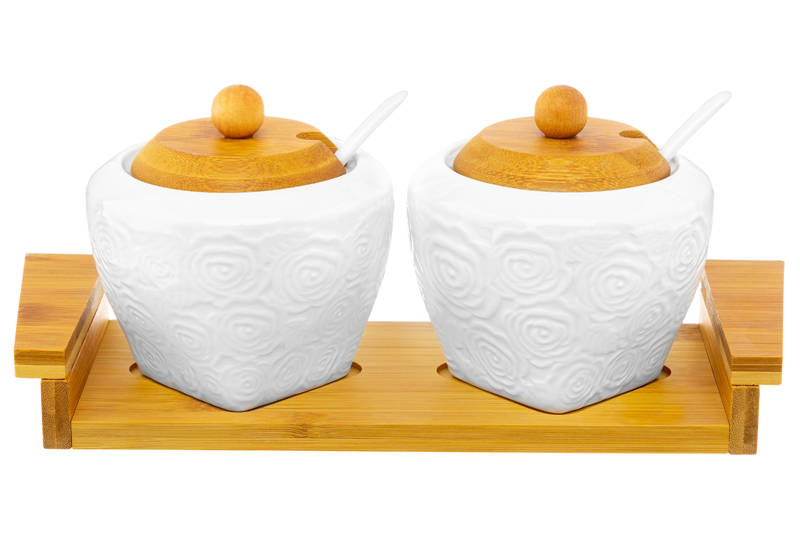БЫЛО 1004 руб. Набор 2 сахарниц 350 мл 26*10*10,5 см "Розы" + ложки + дер. крышки на дер. подставке
