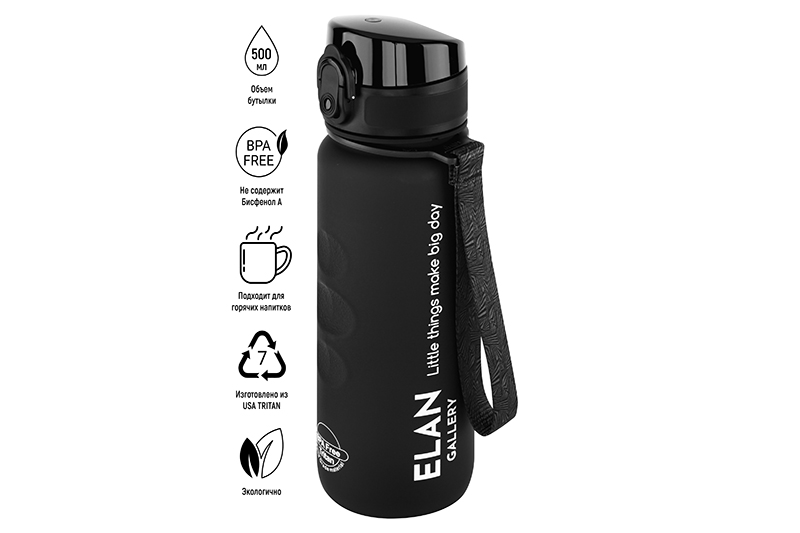 БЫЛО 750 руб! Бутылка для воды 500 мл 6,5*6,5*23 см "Style Matte" черная